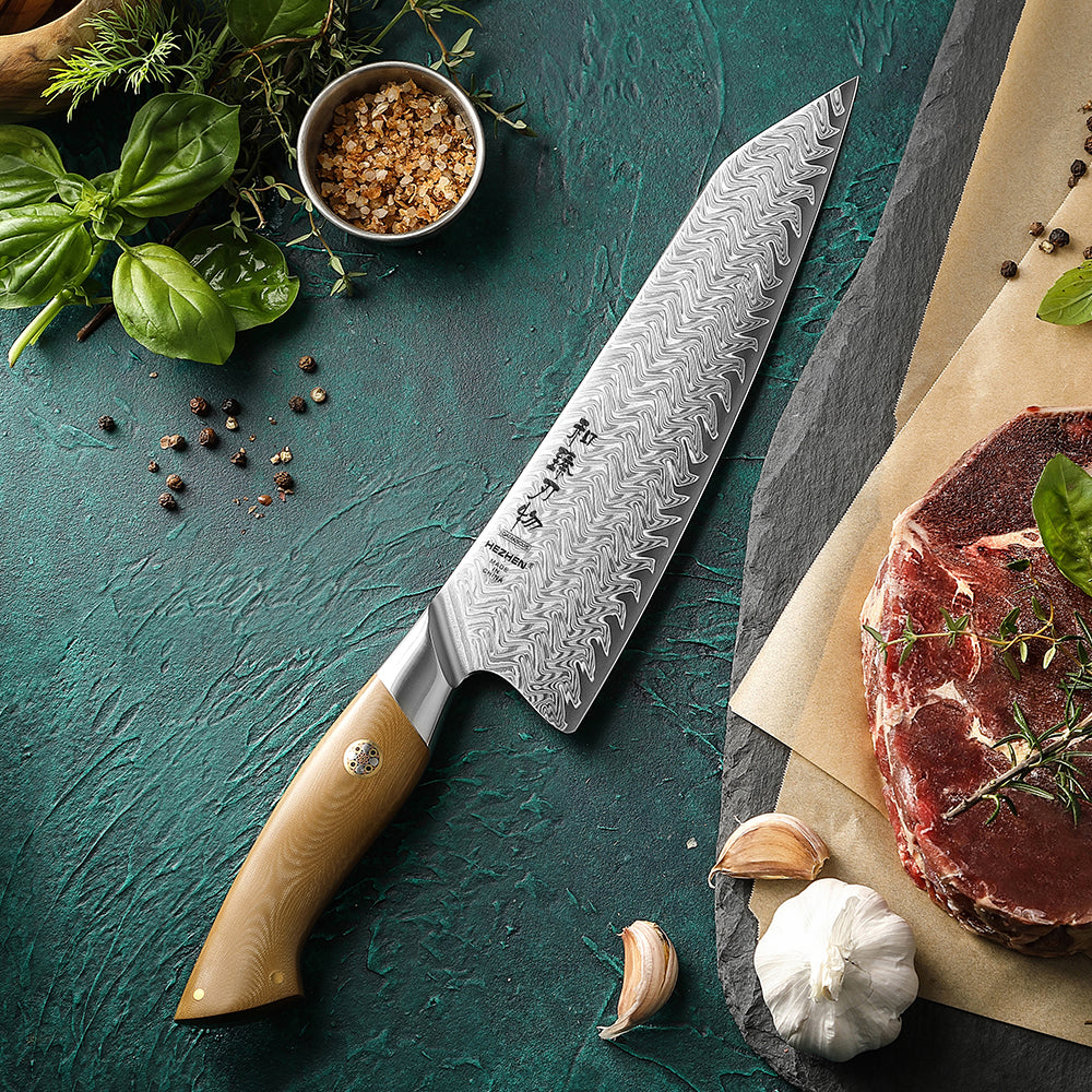 HEZHEN Master Series 73-Layer Powder Damascus Steel Kitchen Knife Blade Material: 73 Layers Powder...