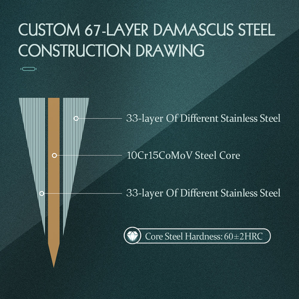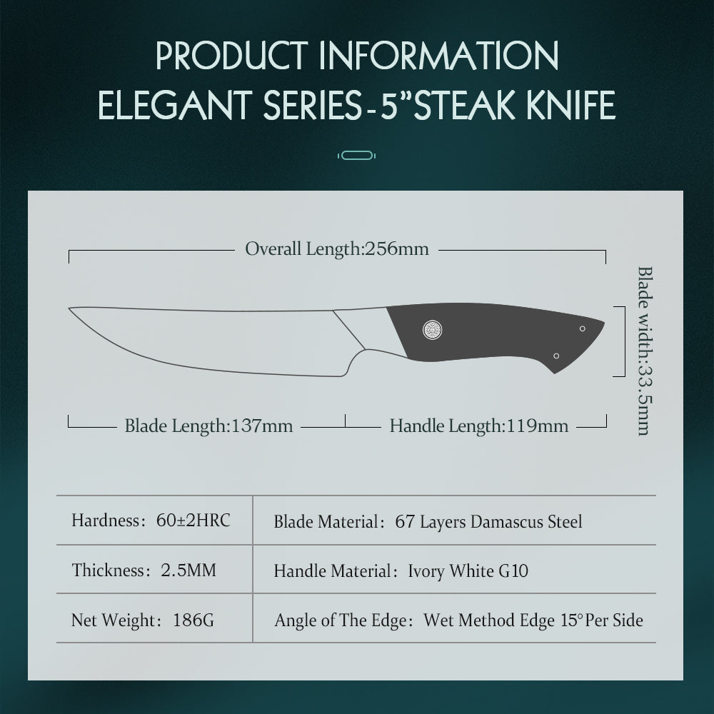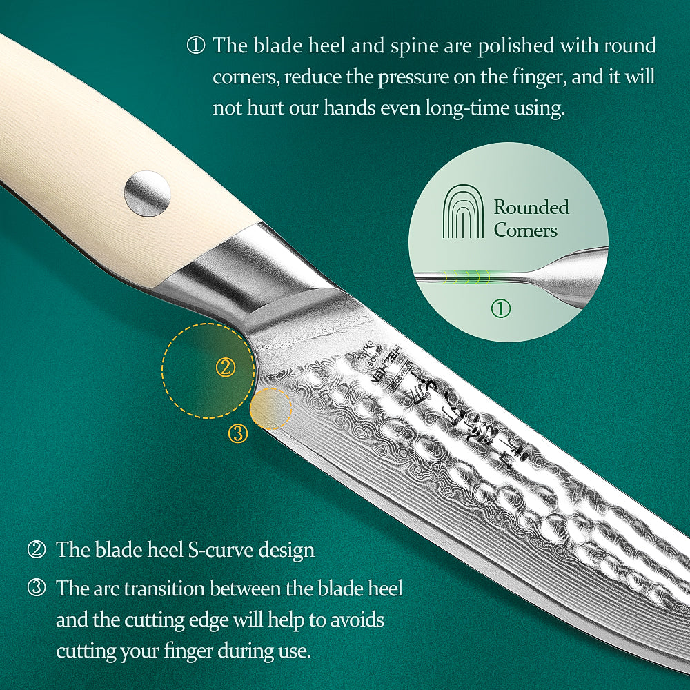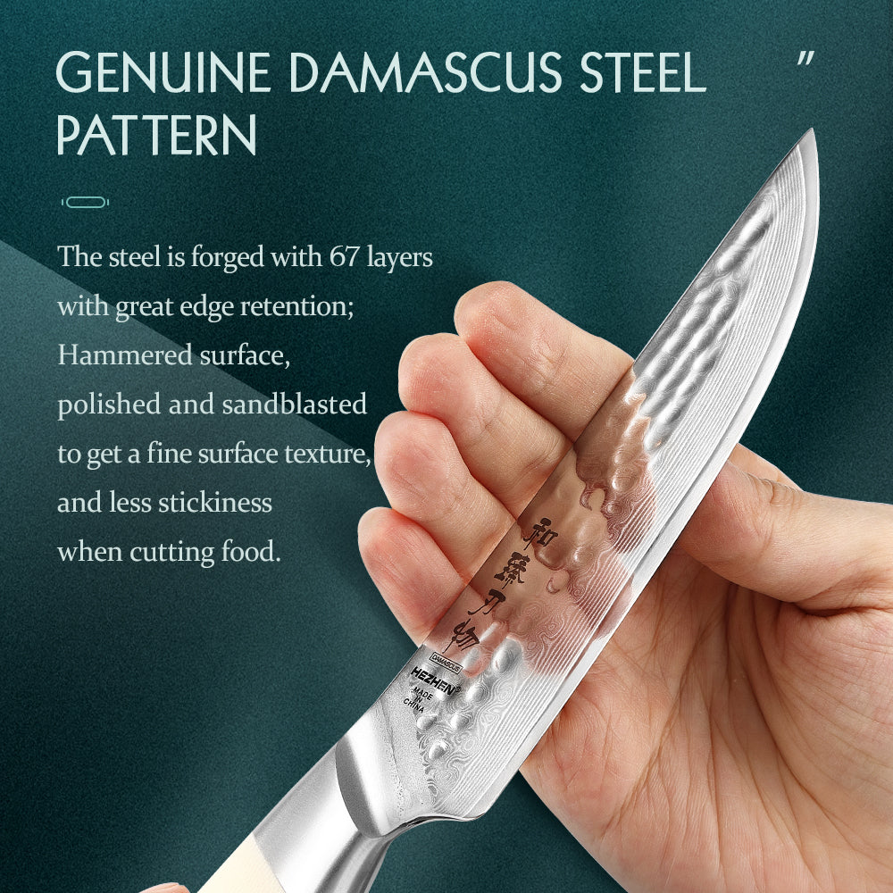HEZHEN 5 inches 67 Layers Damascus Steel Steak Knife Elegant Hammer Series