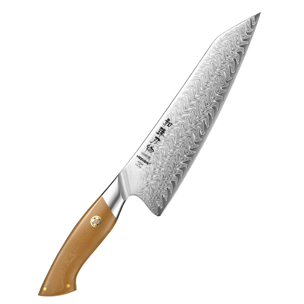 Meet the Hezhen 8.5" Chef Knife, where legendary Damascus performance meets modern ergonomic design. This is your ultimate all-in-one kitchen partner, expertly designed for the tasks that define a cooking session: